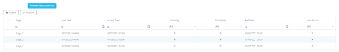 | Multi Stage Plan Instance | The name of the multi-stage execution plan instance composed from the multi-stage execution plan name and the time the instance began to run. NOTE The Multi Stage Plan Instance field indicates if the stages instance is created at campaign level or if it's part of an execution plan. |