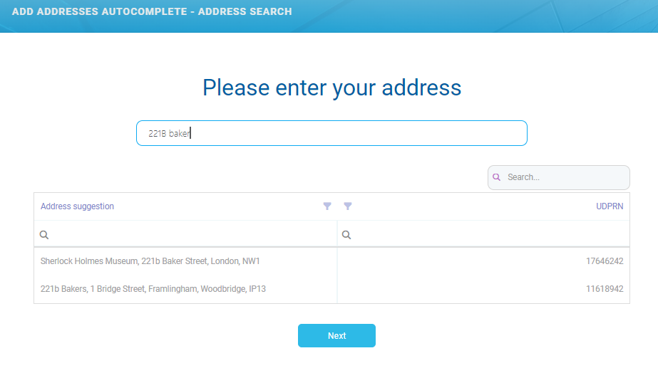 When searching for addresses in the Ideal Postcodes databases, the FintechOS Ideal Postcodes Connector offers a search-as-you-type functionality in order to return a list of address suggestions that match the query ordered by relevance score.