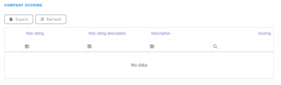 Once a company search is made, the data regarding the company's credit scoring details is stored in the Company Scoring section. This section displays information about cases involving the company. The company's scoring, according to calculation methods similar to those in credit reports.