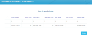 7. Click the Finish button. The Search Lexis Nexis List page is displayed.