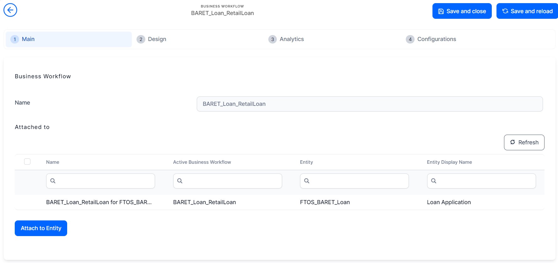 The Business Workflows Processor is used in the Buy Now, Pay Later digital journey for ensuring an easy-to-follow process by using rules-driven business workflows. The workflow is named BARET_Loan_RetailLoan attached to the entity FTOS_BARET_Loan. It contains all the states including for other digital journeys such as Mobile Retail Loan Origination and BuyNowPayLater Loan Application.
