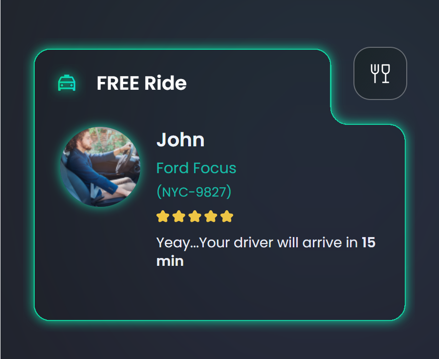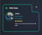 When the user clicks Schedule free trip, the information on the card displays the details about the car ride: