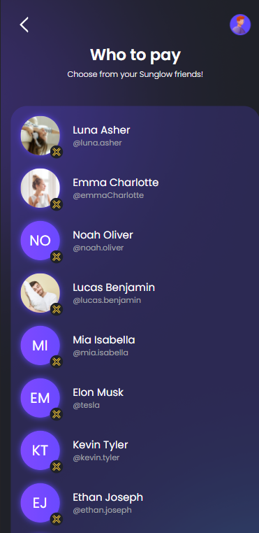 On the page Who to pay, click on one name to select to whom to transfer.