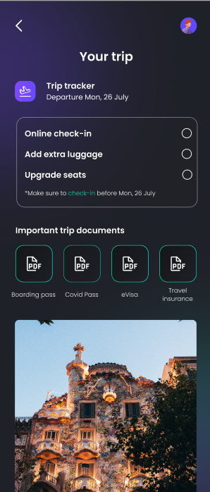 Next, the application stores your important travel documents, such as: