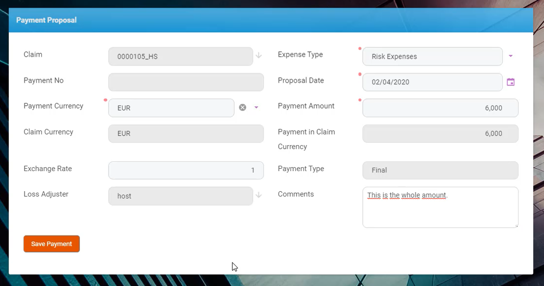 | Payment in Claim Currency | Number | It is auto-filled. |