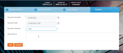 After clicking Schedule, three new fields become available: Payment Date, Resolution Reason and Observations.