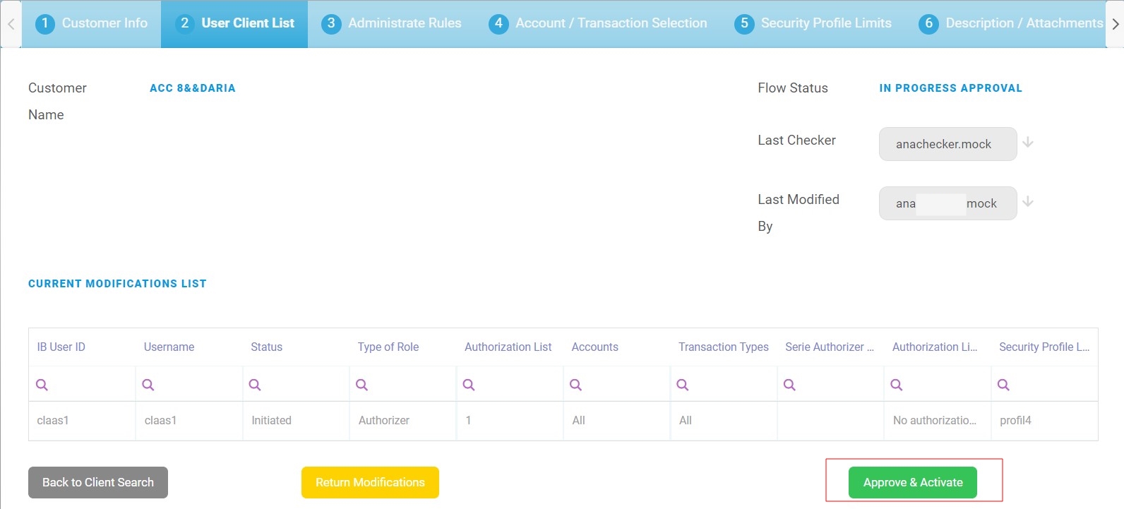 All the records in the Current Modifications List with the statusInitiatedbecomeActivewhen the checker clicks the button Approve & Activate.or