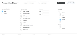 2. The page contains the list of transactions, the filters, the search button.