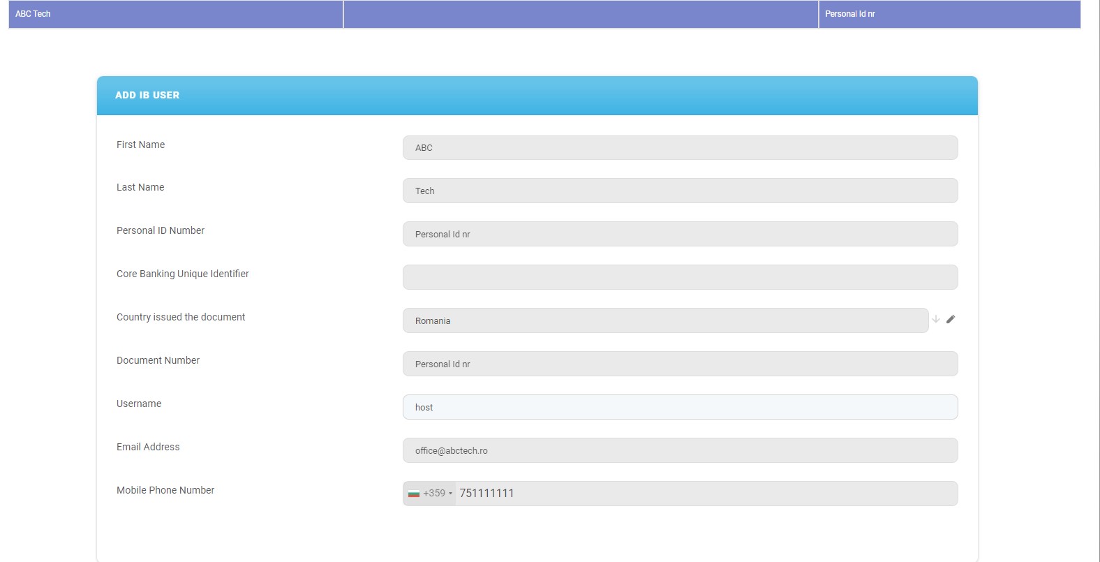 - In the Add IB User section, the data is filled automatically with the information about the user: