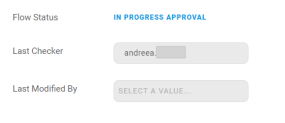 InitiatedorModifiedorTo Be Inactivated. In the field Last checker, the name of the checker is filled in. The flow status isIn progress approval. From here, there are two possible paths, a checker can do:- Approve & Activate the record