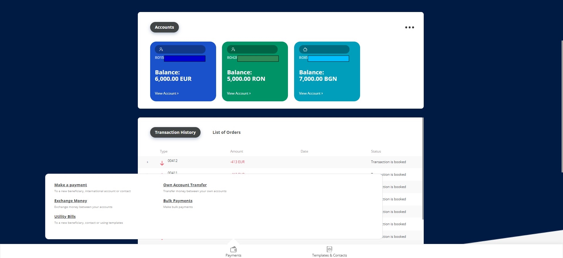 The user is directed to the page Terms & Conditions with the following message: The OTP Service is to protect the use of your account by requiring you to authenticate your identity using a one-time-password ("OTP"), which shall be transmitted through the short message service ("SMS") by the bank to your mobile phone number registered under your account, for transaction that require such OTP for authetification purpose. We'll use the phone number +40********