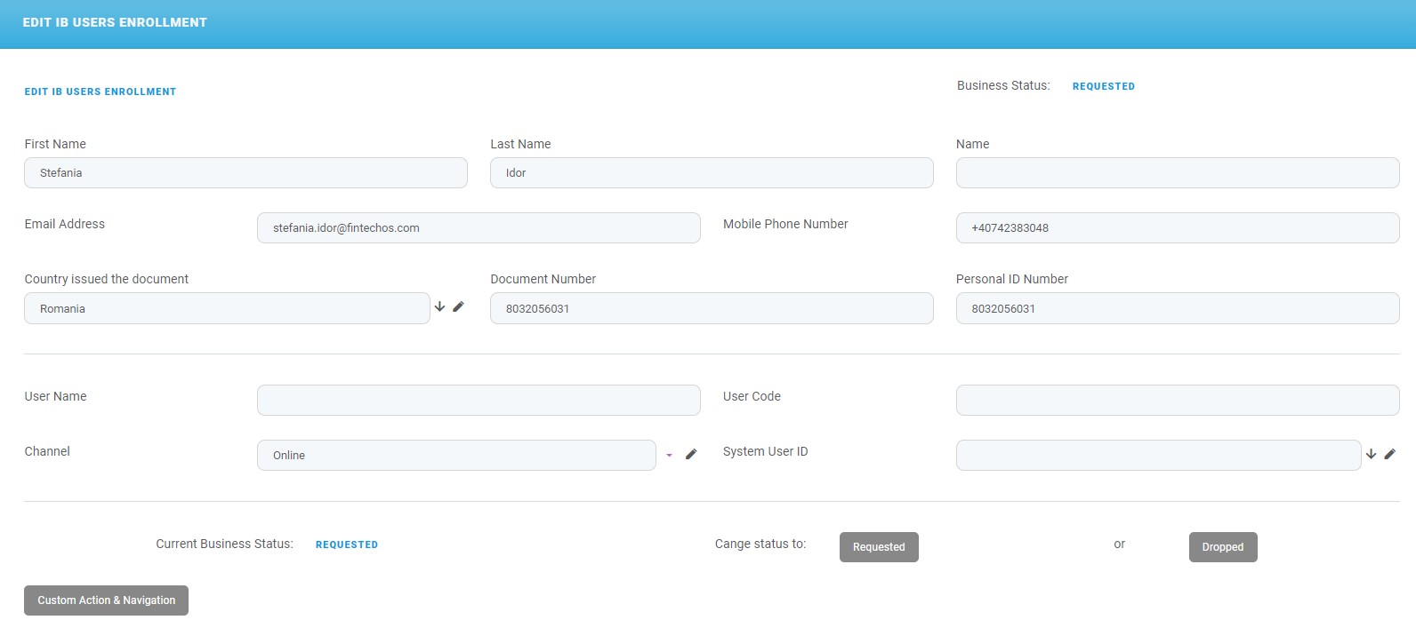 By double-clicking an entry in this grid, it opens the page EDIT IB Users Enrollment.
