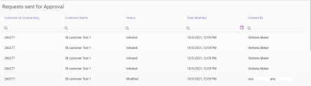 • My requests sent for Approval, i.e., the requests from the maker are sent to the checker, the records with the statuses Sent to Approval or In Progress Approval are displayed.