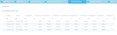 Under the label User Temporary Financial Limits, there are displayed the temporary limits set for a user: