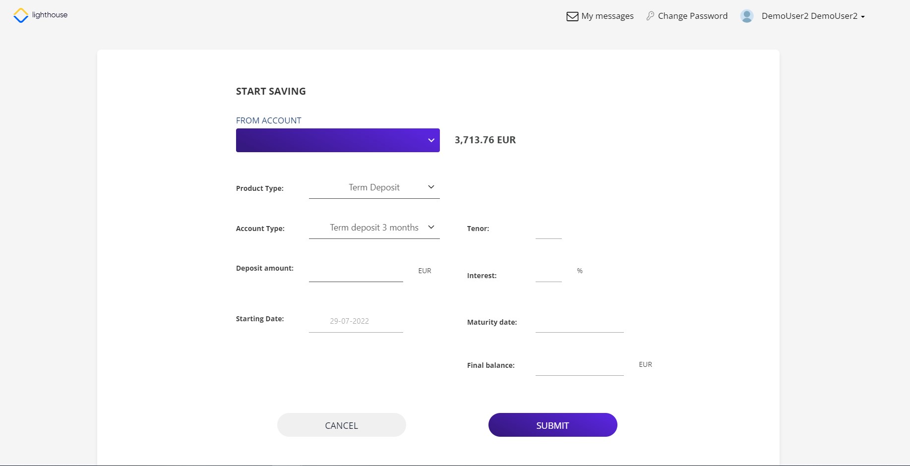If you pick term deposit, you can choose between 1, 3 or 6 months deposit. For both savings and term deposits, the interest rate set by the bank is automatically displayed.