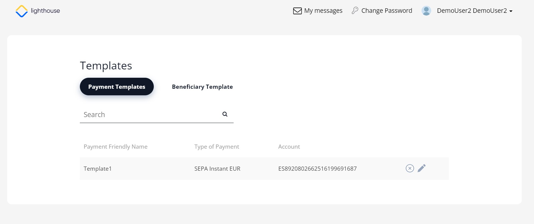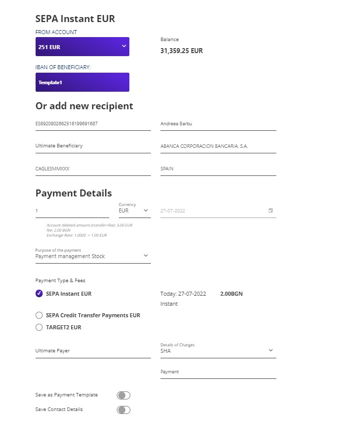 A beneficiary template is a draft of a payment where the information about the receiver of the funds is already saved from a previous transaction.