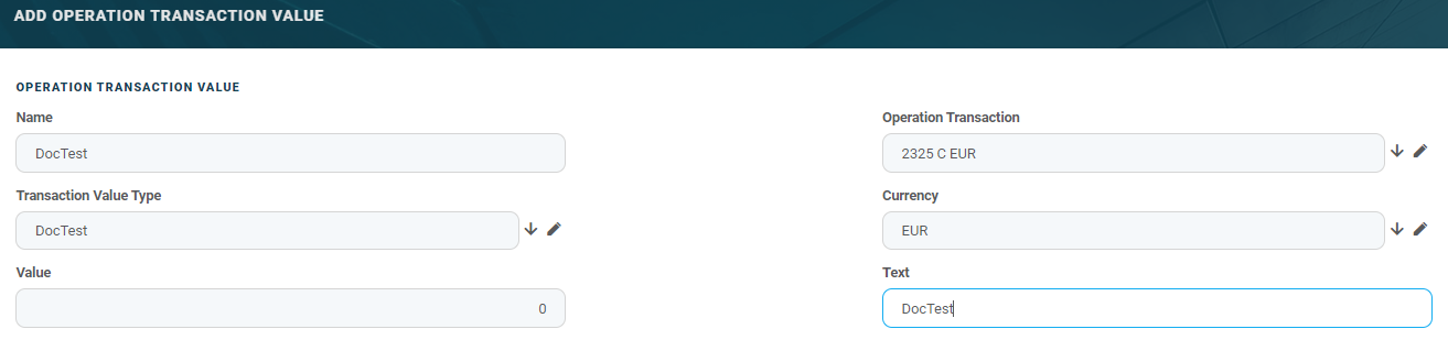 1. To add a new operation transaction value, click the Insert button under the Operation Transaction Values section. The Add Operation Transaction Value page opens.