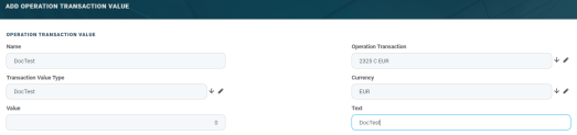 5. Click Save and reload. The Operation Transaction Values and the Accounting Entries sections are displayed.
