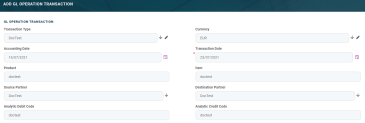 This menu allows users to search for existing transactions or create new ones. It holds the header items of a transaction. In the data model, the entity FTOS_GL_OperationTransaction stores all the transaction data from the ledger. All the transaction value types are the details saved into the Operation Transaction Value section.