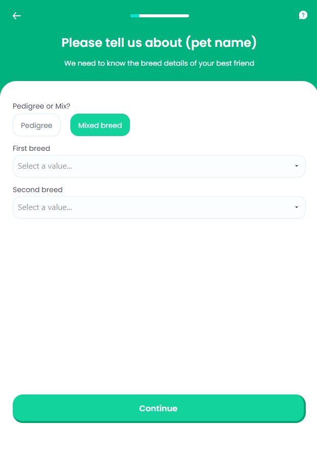 | Supporting text | The following supporting text is displayed under the heading title: We need to know the breed details of your best friend |
