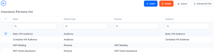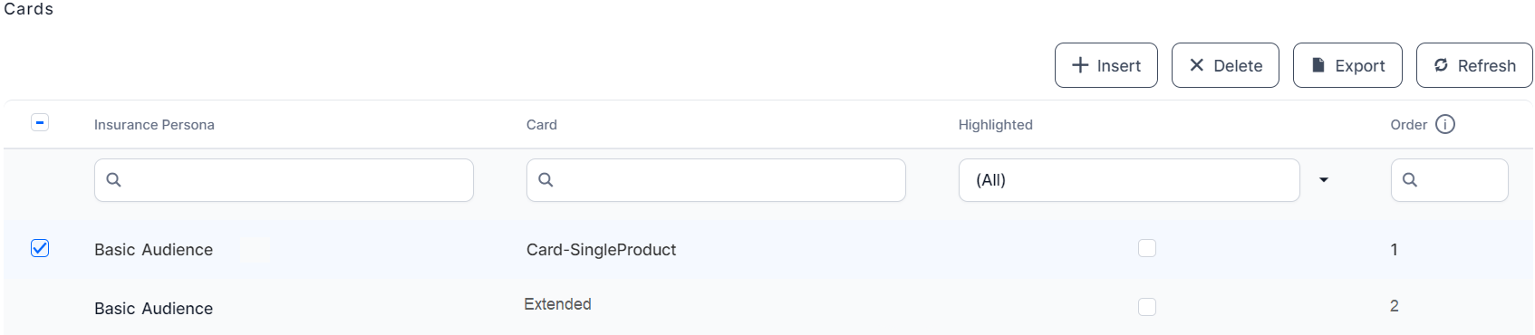 In this section, you can configure the types of insurance persona and the cards to be displayed.