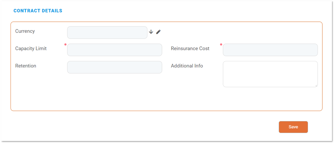 The Contract Details sections is displayed dynamically, according to the choices you make when you use the Reinsurance Type option set (see details above).