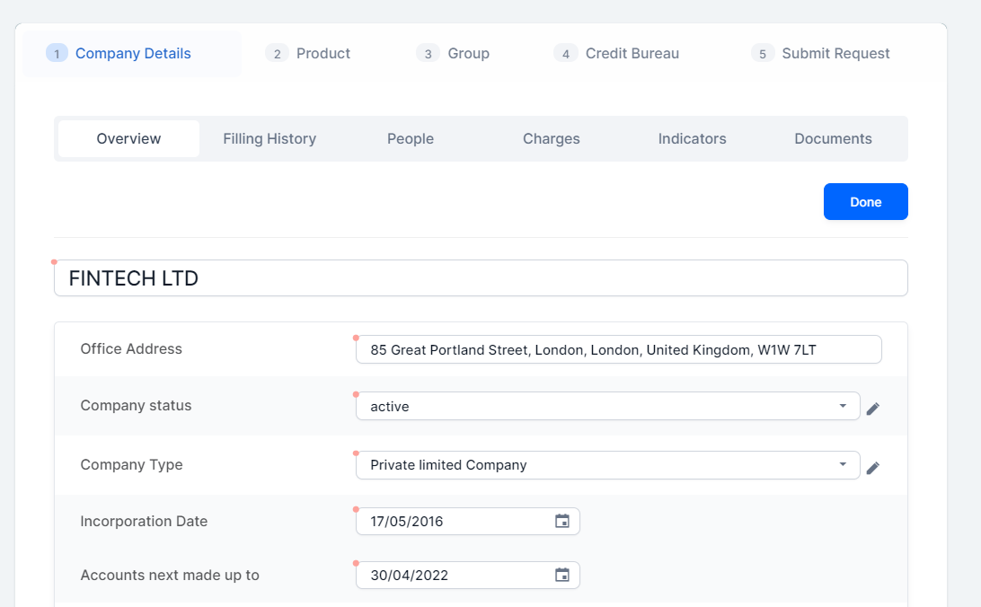 After you found the desired application, just double-click it and the Company Details tab opens.