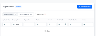 Select the Is returned checkbox to view the applications that are returned from the Underwriter or Legal Representative.
