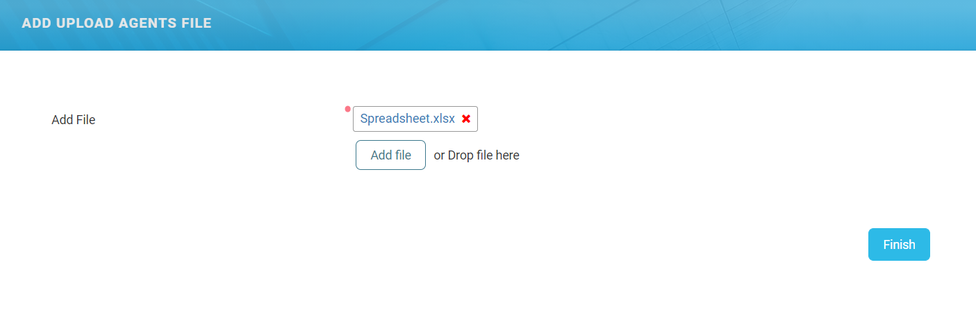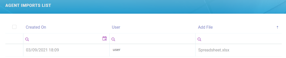 This section contains a list of file uploads that are made over time, named Import Agents Files. The following columns are displayed: