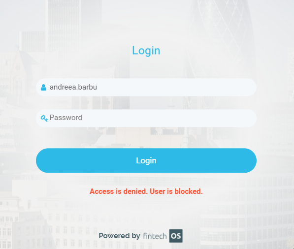 A temporary blocked user is the account that has opened the FintechOS Portal, inserted the wrong password for that said account for a maximum of five times or for a maximum that was set previously and cannot access the Portal anymore.