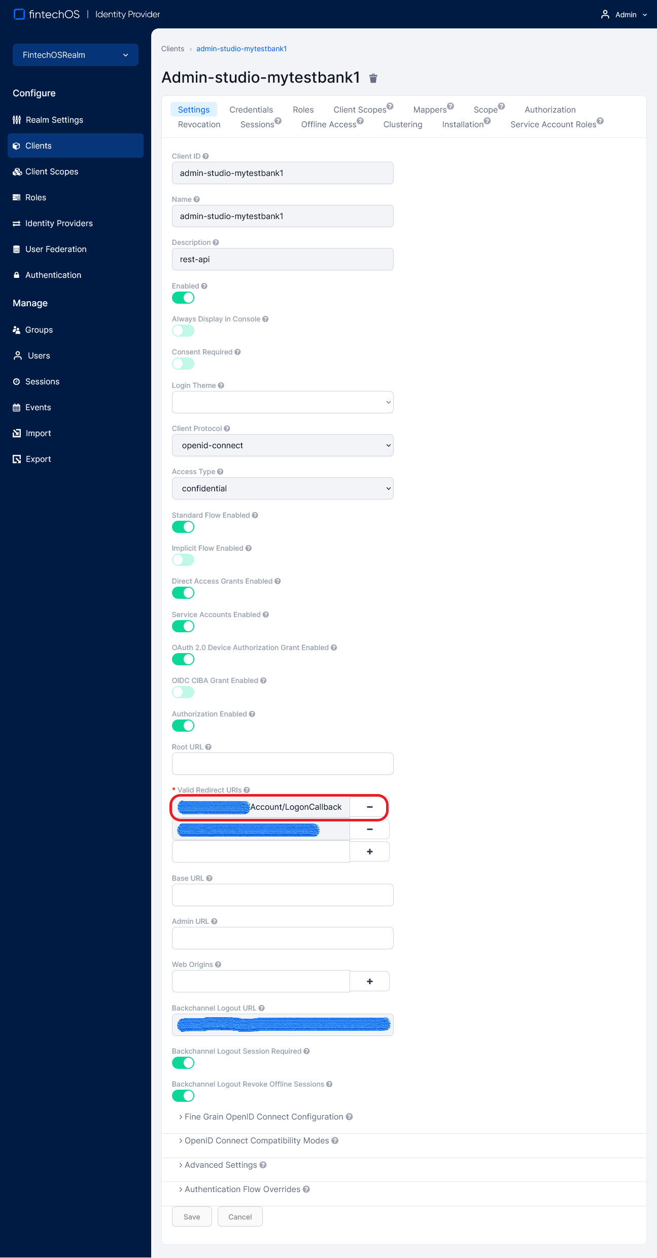 | openid-callback-url | URL where the user agent is redirected after a successful login. The default value is {<Studio/Portal base URL>/Account/LogonCallback. A matching entry must be configured in the FintechOS Identity Provider as a valid redirect URI for the client. |