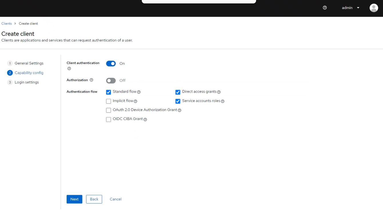 - In the Capability Config section, switch Client authentication on, and select Service accounts roles, click Save.