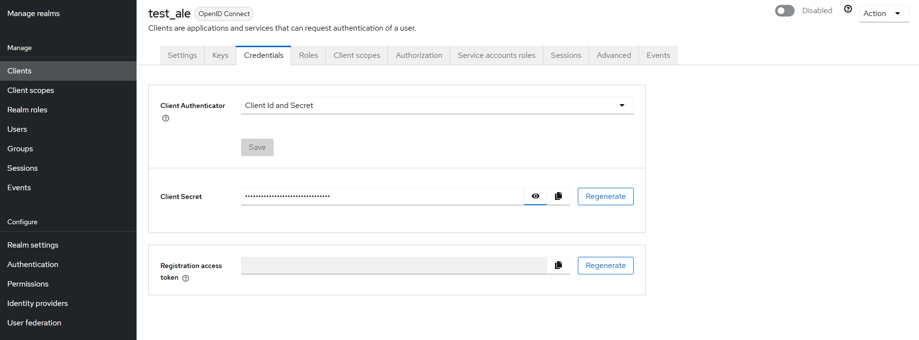 | openid-client-secret | Your FintechOS Platform component's corresponding client secret generated by the FintechOS Identity Provider. In the FintechOS Identity Provider admin console, you can find the client secret in the Credentials tab of your client's page. |
