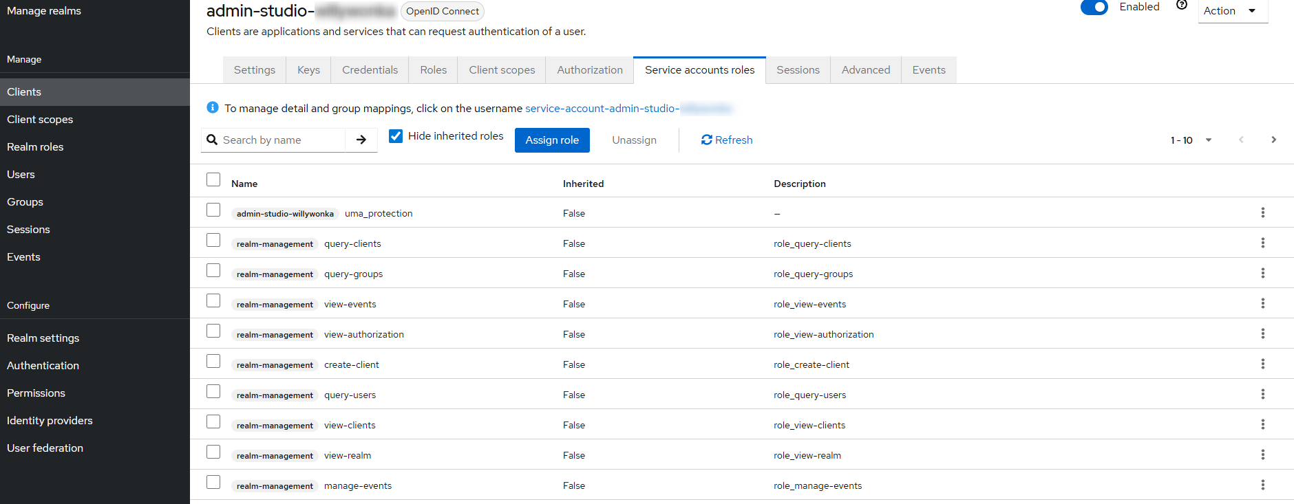 FintechOS Studio clients require full privileges for membership management (CRUD operations with users, password change/reset, etc.). Roles for service accounts can be added from the FintechOS IDP or Studio. The following steps show how to add roles from the FintechOS IDP. Check the Manage Users page for how to add roles from Studio.