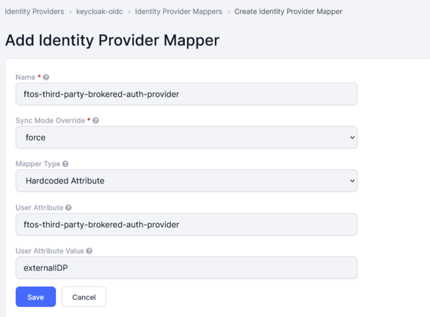 - User attribute - ftos-third-party-brokered-auth-provider