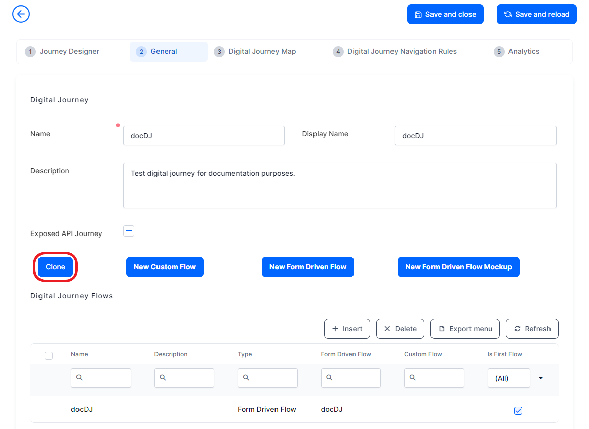 The cloning functionality has been extended to digital journeys. A new Clone button is available in FintechOS Studio under the General tab of digital journeys, enabling you to easily replicate both the journey and its associated flows.