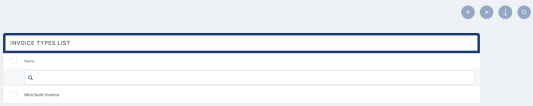 On the Invoice Types List page, you can create a new invoice type record, search, edit, or delete an existing one. You can't delete records already used by other records.