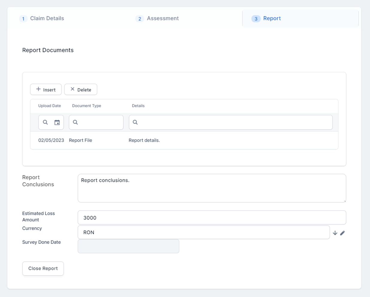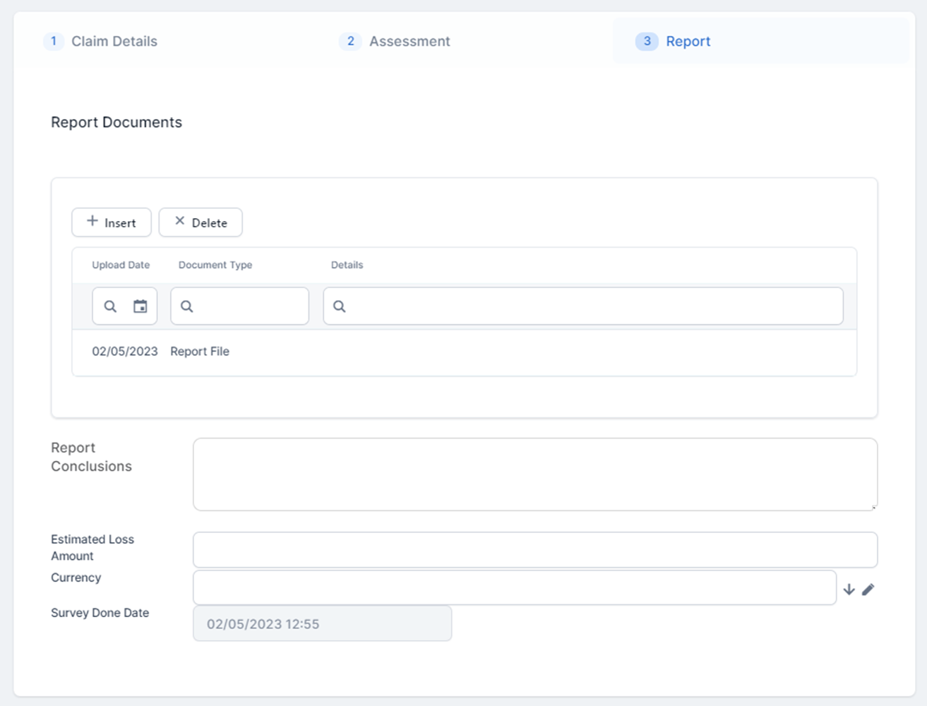 Input the Report Conclusions, the Estimated Loss Amount and the Currency.