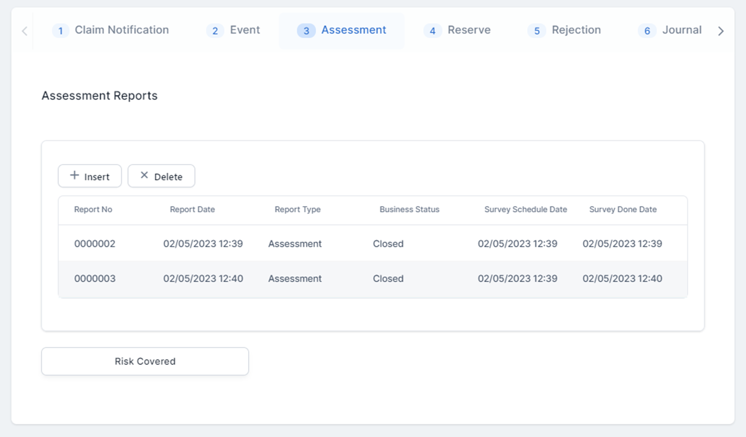 Click Save and Close, and you are taken back to the Assessment tab of the claim record.