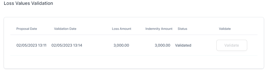 Click Add Loss Value. The Loss Values Validation grid is updated with the loss amount the you have input above. The loss values validation is now in Draft status.