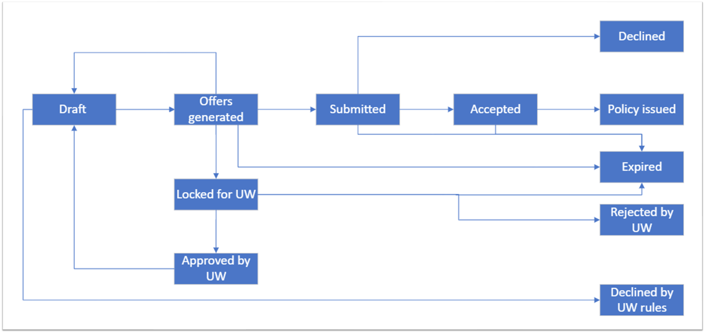 | Draft | The quote is registered in the system and subjected to UW rules from product level. |