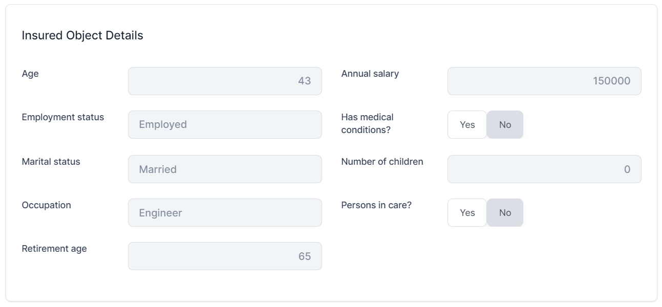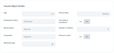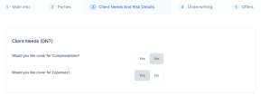 Click the fourth tab, Underwriting. This section presents the underwriting rules results for each chosen coverage, based on their formulas.