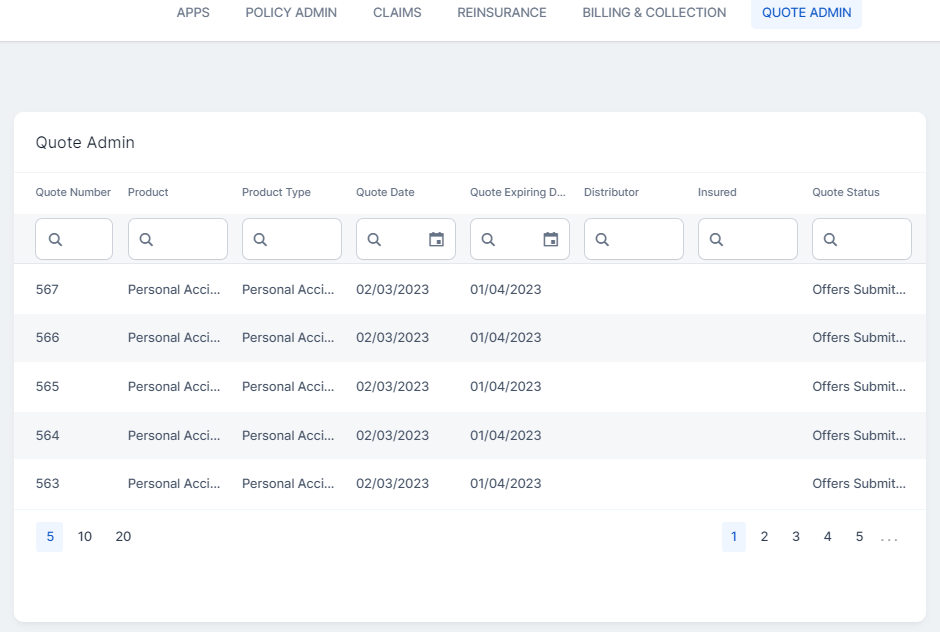 The Quote Admin solution enables you to securely store and efficiently manage a virtually unlimited number of digital quotes. In FintechOS Portal, you can view the list of all quotes stored in your environment.