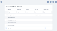 In FintechOS Portal go to Main Menu > Settings > Change Engine. The Policy Alteration Type List is displayed.