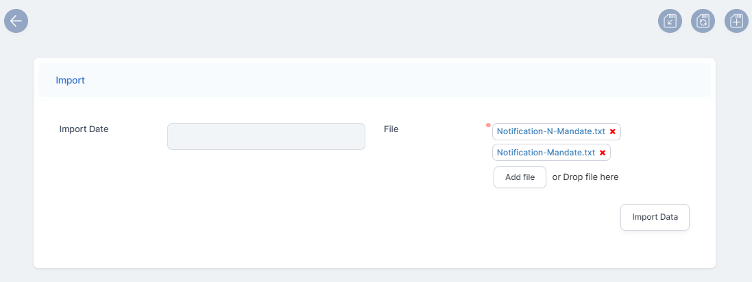 Click Save and Reload. The files are now registered in the system, and the Direct Debit Mandates tab becomes available.