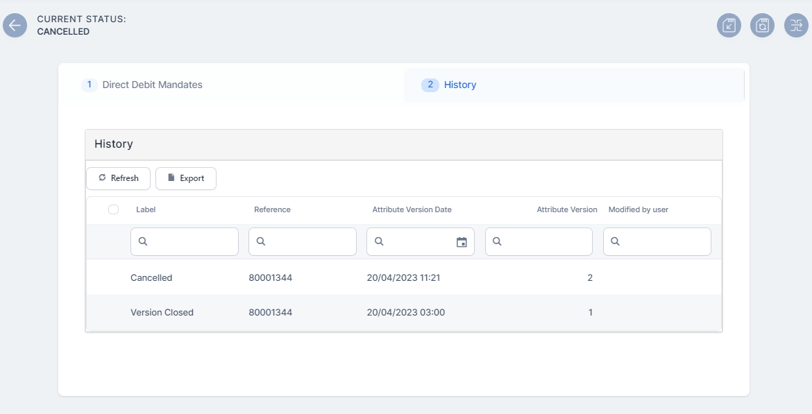 Check the History tab. The cancellation of the mandate is logged into the system.