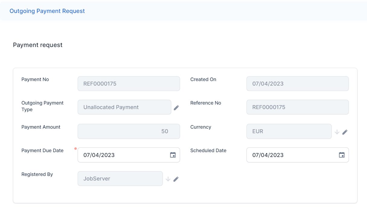 Note: All the automatic or manual allocation for Outgoing Payment Requests takes place only if the request is in status Scheduled.