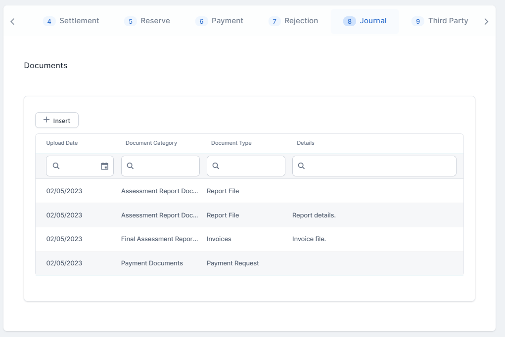 In the Journal tab you can find all the documents that you have added in the claim process.