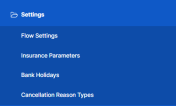 | Bank Holidays | 3 | Core Insurance Master | Displays the Bank Holiday entity. Bank Holidays can be added, edited or deleted. For details, consult the Bank Holidays page. |