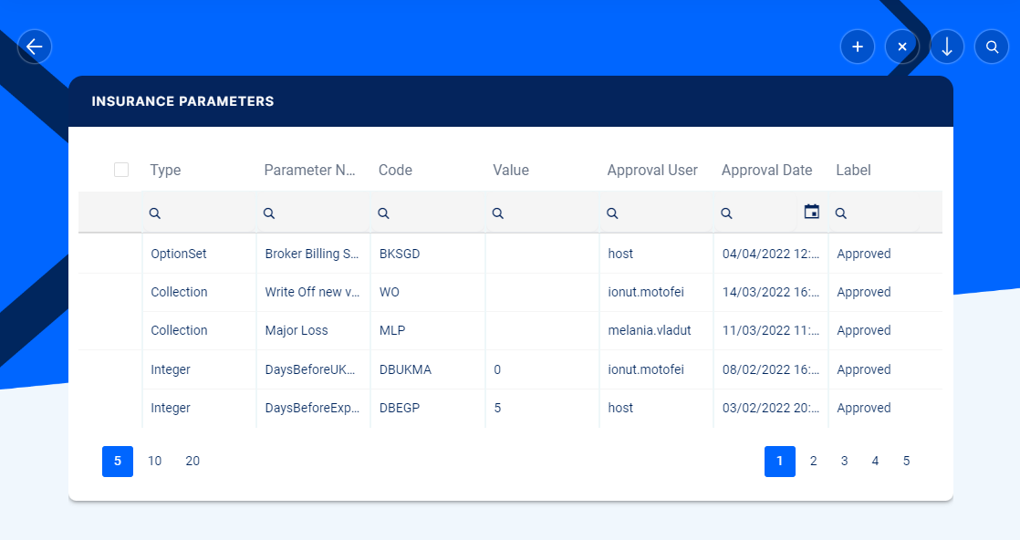 - Every Insurance Parameter version starts in a Draft state and must be Approved before going live.